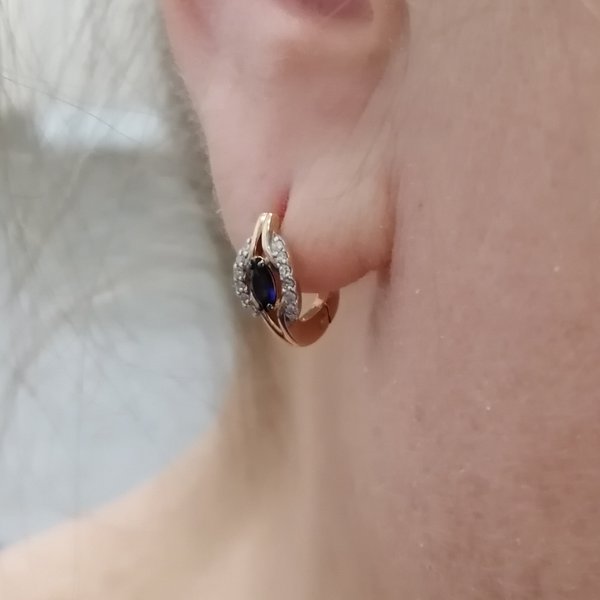 Фото «Золотые серьги с сапфирами выращенными и бриллиантами»