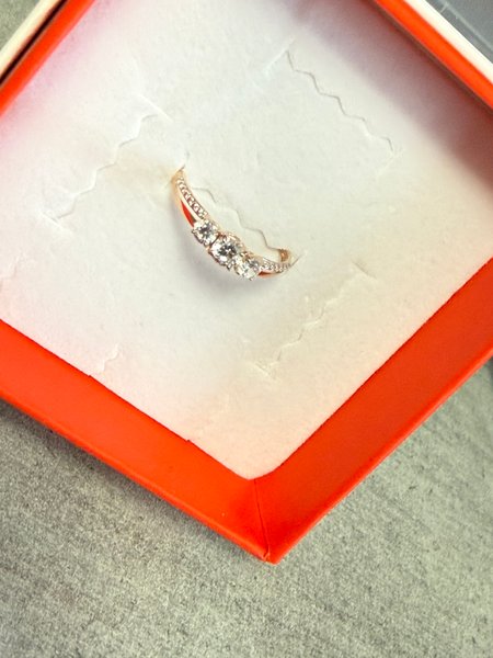 Очень красивое и нежное колечко, тоненькое, но за свою стоимость хорошо, надеюсь гнуться не будет. Пришло в коробочке, хорошо упакованно, единственное цена на бирке отличается от фактической почему-то. В целом очень довольна.