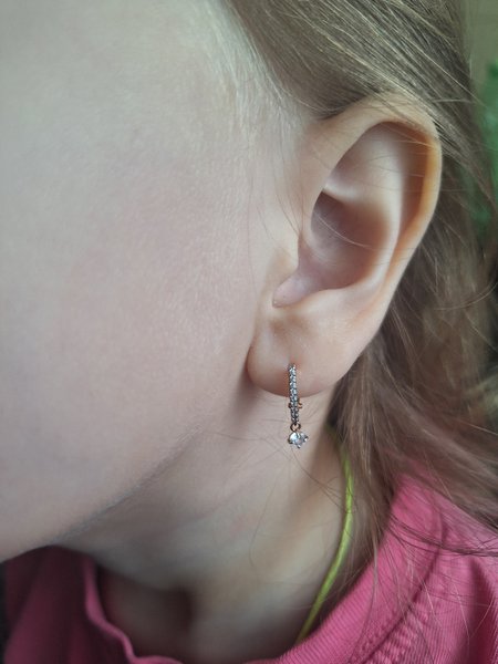 Очень красивые ,нежные серьги,покупали ребёнку на день рождения!Аккуратно смотрятся на ушке!К покупке рекомендую! Нет