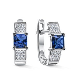 Золотые серьги с сапфирами выращенными и бриллиантами