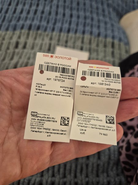 Очень красивые серьги, как на фото, брала к кольцу) идеальные Не выявлено