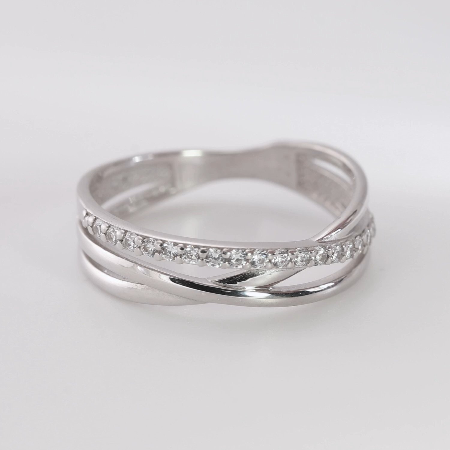 Комментарий:Дорожка из фианитов супер здорово блестит, аккуратная и ласковая форма (как мне кажется самое подходящее слово))) влюбилась в это кольцо с первого взгляда