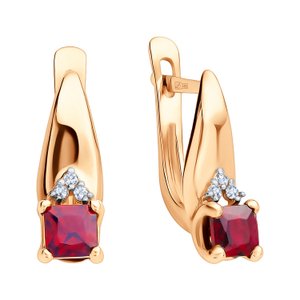 Золотые серьги с гранатом и фианитами