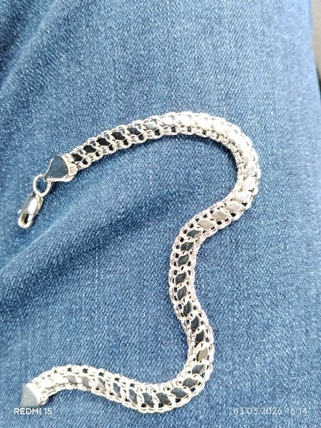 Достоинства:Универсальность. Серебряный браслет подходит для любого случая, может быть как изысканным и сложным, так и сдержанным.