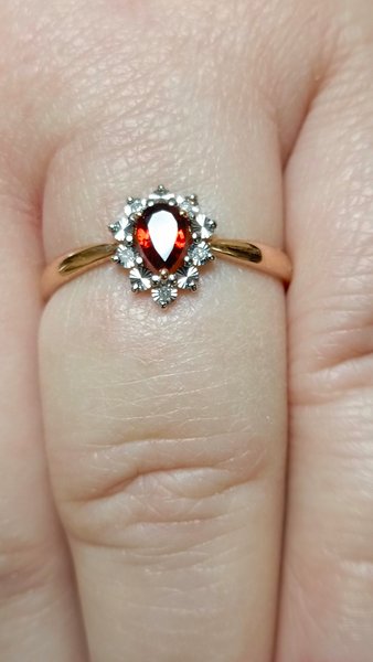 Золотое кольцо с гранатом и бриллиантами