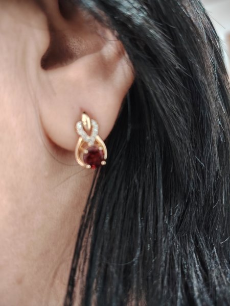 Золотые серьги с гранатом и фианитами