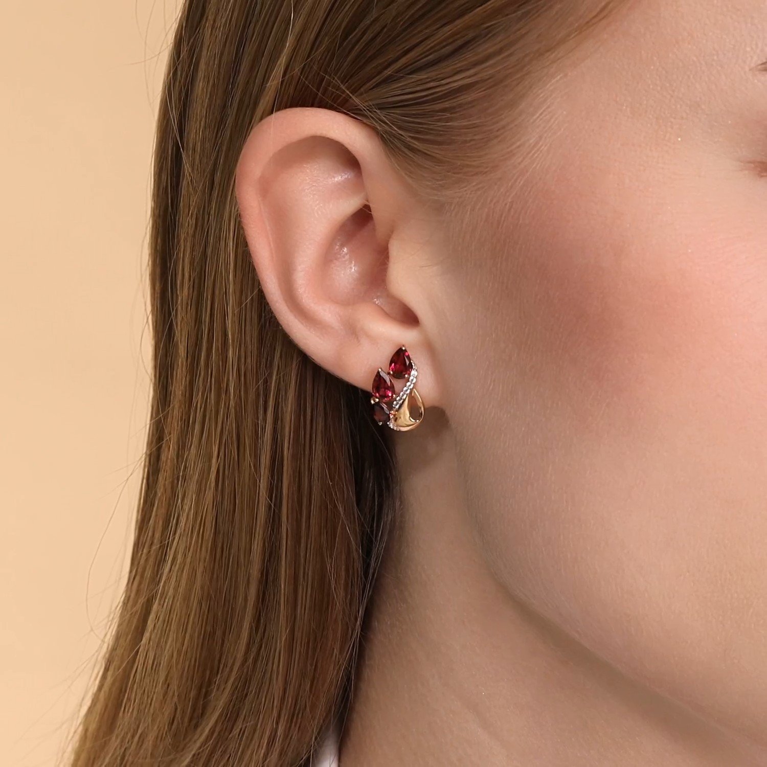 Золотые серьги с гранатом и фианитами