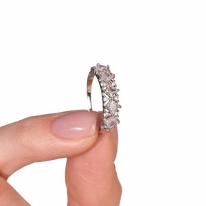 Красивое кольцо - фианиты ярко сверкают на солнце. Не сильно крупное, смотрится элегантно, но даже когда на руке нет других колец, его хорошо заметно. Пока не обнаружила.
