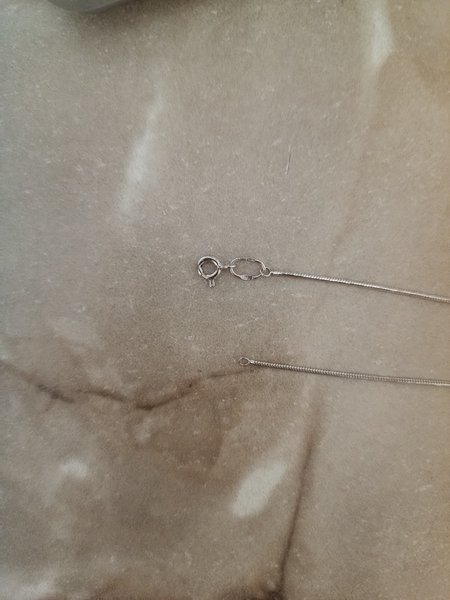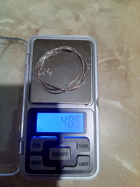 Красивая,полновесная. Не весомая. Маленькое ушко. Хоть и тонкая,но очень красиво смотрится.Вес соответствует.Без заломов,ношу месяц,сплю и купаюсь с ней.