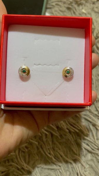 Золотые серьги с изумрудами выращенными и бриллиантами