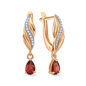 Фото «Золотые серьги с гранатом и фианитами»
