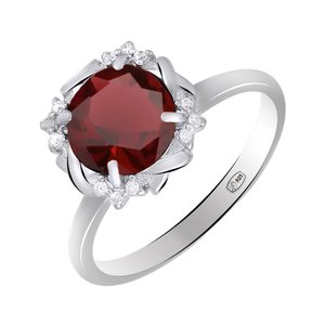 Серебряное кольцо с гранатом и фианитами