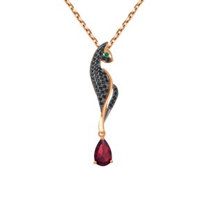 Фото «Золотая подвеска Кошка с гранатом и фианитами с родированием»