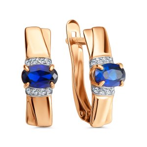Золотые серьги с сапфирами выращенными и бриллиантами