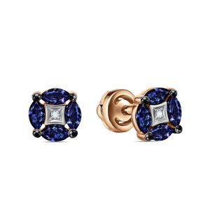 Золотые серьги с сапфирами выращенными и бриллиантами