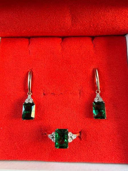 Подарили мне их на юбилей : 55 лет - 6 февраля. Давно хотела серьги с изумрудами. Легкие, удобные, смотрятся неплохо, цена более чем приятная. Теперь загорелась подвеской Нет