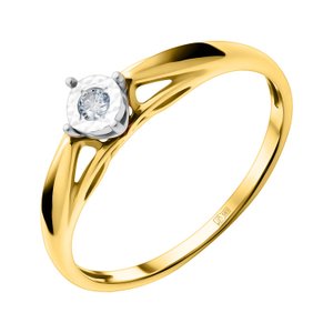 Фото «Золотое кольцо с бриллиантом и родированием с алмазной гранью»