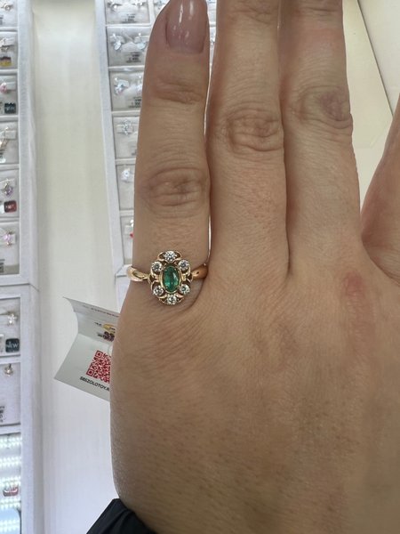 Золотое кольцо с изумрудом и бриллиантами