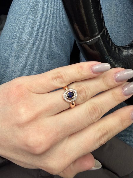 Золотое кольцо с сапфиром выращенным и бриллиантами