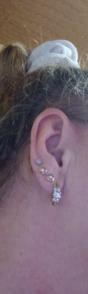 Жаль, что фото в каталоге такое неудачное не передает всей красоты изделия! Очень короткий штифт, только на тонкие мочки, учтите, нет и 5 мм, а если учесть, что серьги в виде полумесяца, то "съедается" ещё часть штифта, Серьги хороши, камушки чистые, на моих тонких мочках сидят плотно, вес немного больше заявленного 4,6 гр. Длина лицевой части 1,5 см.