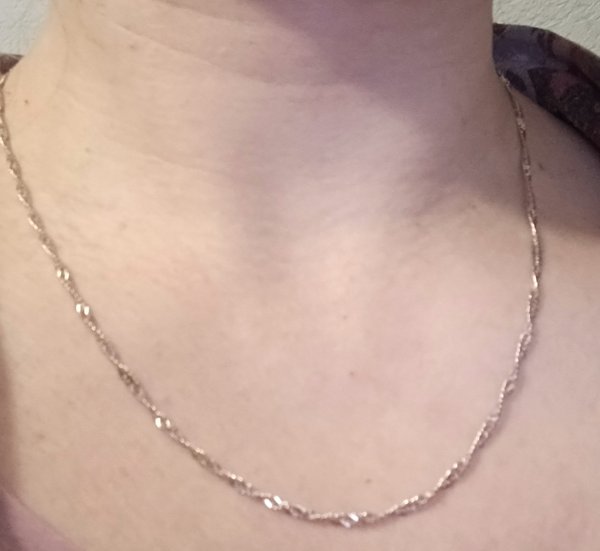 Красивая полновесная цепочка, выглядит очень женственно, переливается на свету, однозначно рекомендую к покупке