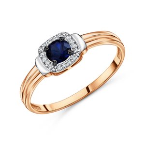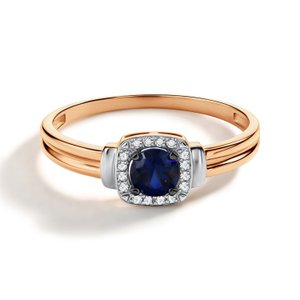 Золотое кольцо с сапфиром выращенным и бриллиантами