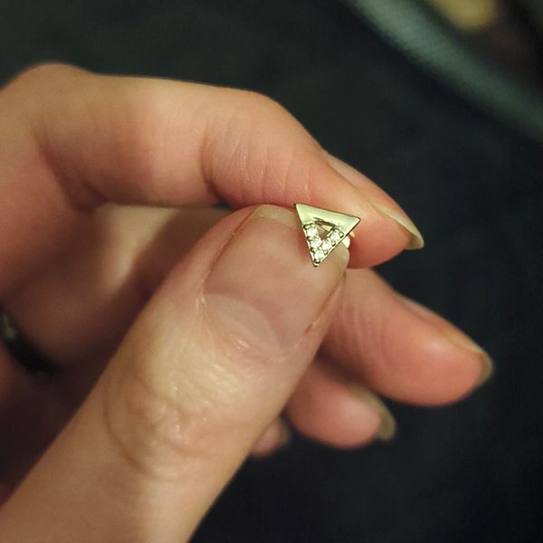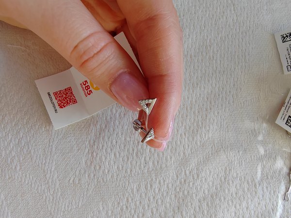 Отличительный дизайн Значимых недостатков нет Сережки подошли с моим пожеланиями на 100 %. Носится они будут на мочке вторыми, третьими, поэтому размер и дизайн ( неброские) именно те, что мне надо. Пришлось обойти 5 ювелирных магазинов, и только здесь я нашла треугольные пуссеты. Цена на кассе- сказка. СПАСИБО