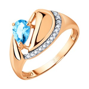 Золотое кольцо с ситаллом и фианитами