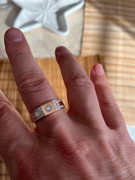 Очень изящная печатка, красивая, все как на картинке в приложении. Заказали онлайн, пришли за заказом в магазин. Там позволили проверить и осмотреть наш заказ, а после оплаты, красиво упаковали в подарочную коробочку и мешочек! Нам понравилось обслуживание продавцов и качество товара 🙏🏼. Благодарю 💐