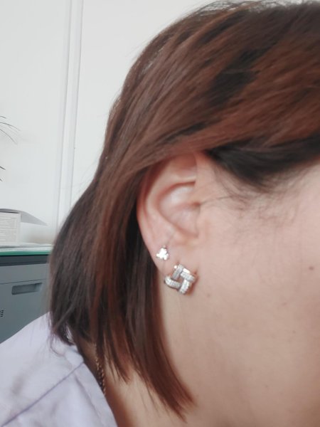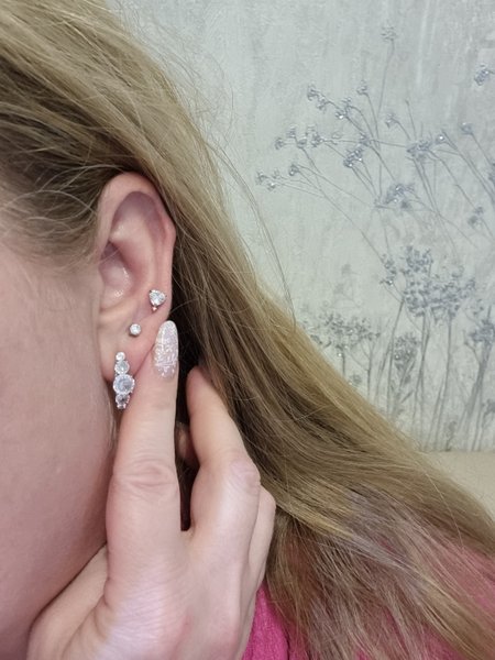 Милая пусета, блестит Нет Брала для третьего прокола, смотрится интересно. Подойдёт как к золотым так и к серебряным изделиям.
