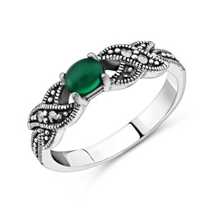 Фото «Серебряное кольцо с хризопразом и марказитами»