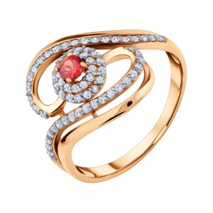 Фото «Золотое кольцо с гранатом и фианитами»