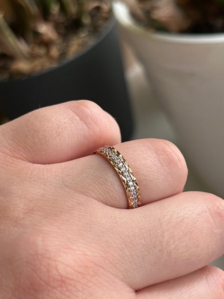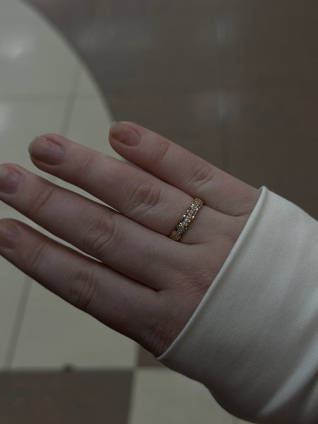 Очень красивое колечко, не тонкое, все камни на месте, проба есть, рекомендую 👍. Нет
