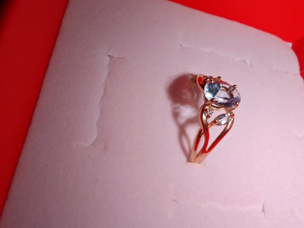 Чистый, красивый камень. Проба Заказала несколько колец на выбор. По результатам: на внешний вид это изделие и изделие из 585 золота, абсолютно идентичны. Решила остановить свой выбор на данном украшении. Взяла сама себе, мне его не продавать, не сдавать, буду носить и радоваться. Село отлично, камень чистый, сверкает, идеально, я считаю