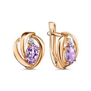 Золотые серьги с аметистами и фианитами