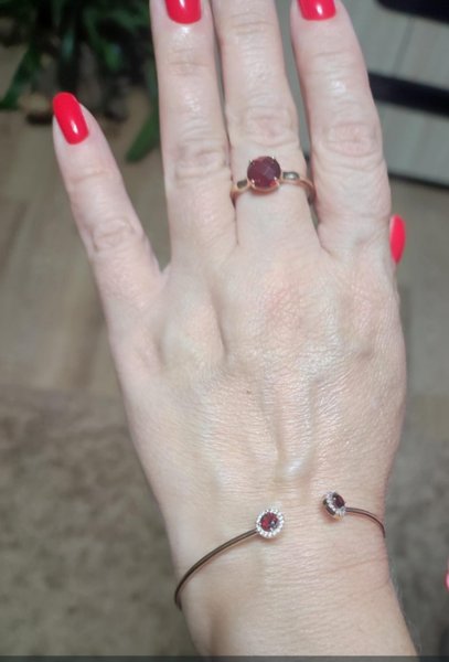 Золотой браслет с гранатом и фианитами