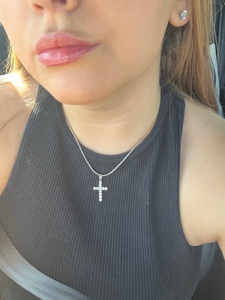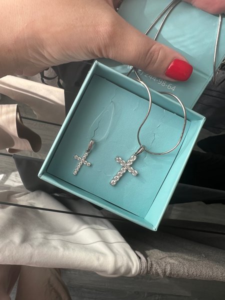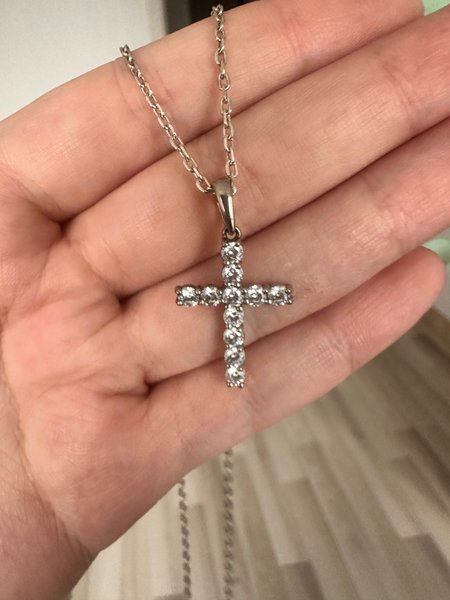 Фото «Серебряная подвеска Крест с фианитами и платинированием»