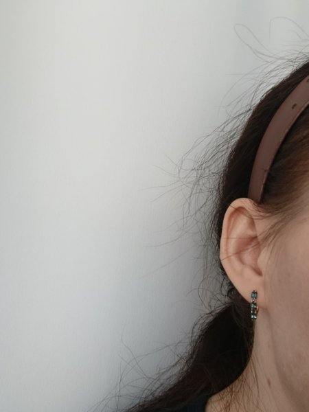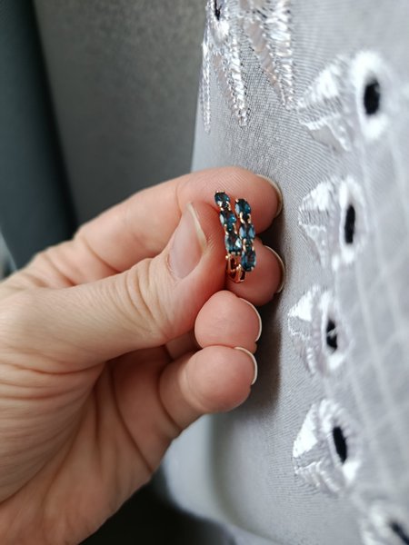 Замечательные, аккуратные сережки с топазом цвета морской волны! И нарядные и повседневные одновременно!!! Переодически цепляется шарф или ворот одежды за сережки(