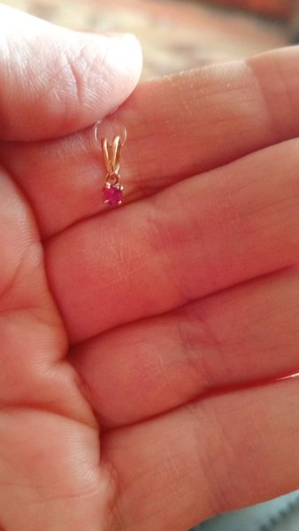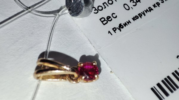 Рубин корунд, проба золота 585, 0.34г,размеры подвески 9мм*3мм., большое ушко,камень яркий. Нет Чудесная подвеска