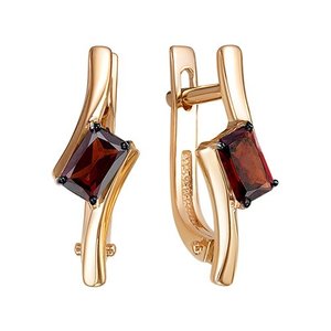 Золотые серьги с гранатом и родированием