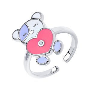 Серебряное кольцо Мишка с эмалью и фианитом с родированием