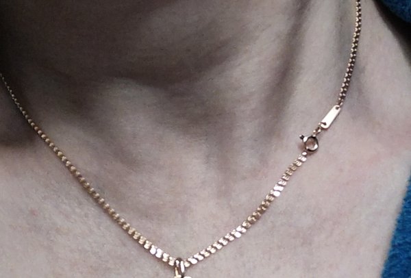 Очень красивая цепочка👍❤ Необычное плетение, давно такую хотела. За счет алмазной огранки красиво блестит-переливается. Для меня идеальный размер, люблю короткие цепочки☺ Нет
