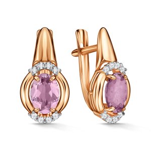 Золотые серьги с аметистами и фианитами