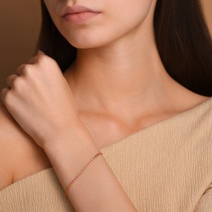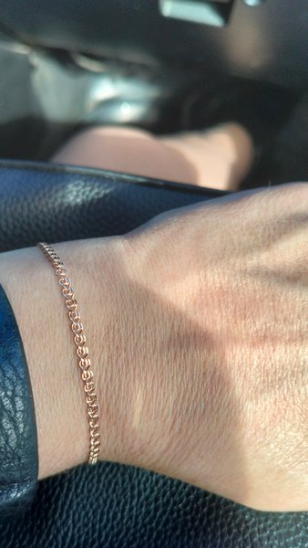 Очень нежный браслет, замок работает исправно, думала будет очень тонкий, но ошиблась, смотрится изящно