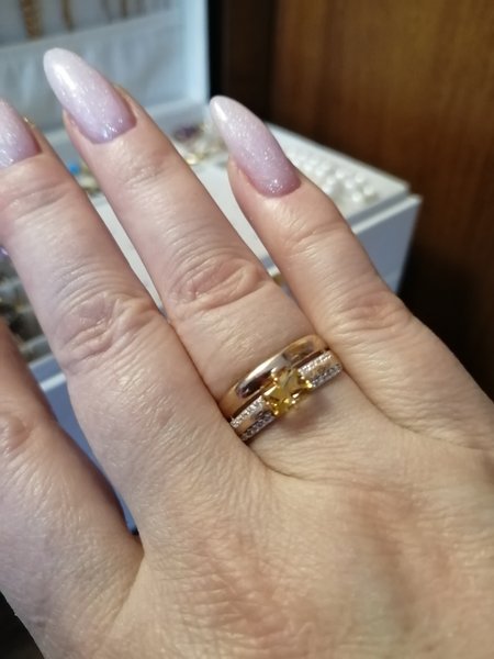 Золотое кольцо с цитрином и фианитами