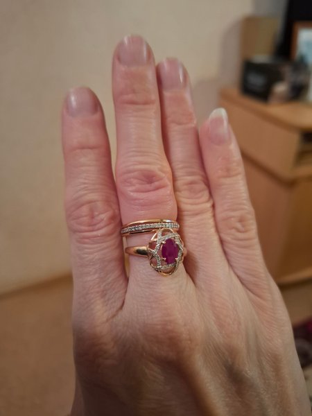 В реальности кольцо оказалось красивее, чем на фото. Нет Вставка из бриллиантов и края кольца с просветом, а на фото сайта выглядело сплошным. Очень понрааилась, брала в пару к своему кольцу с рубином, красиво сочетаются.