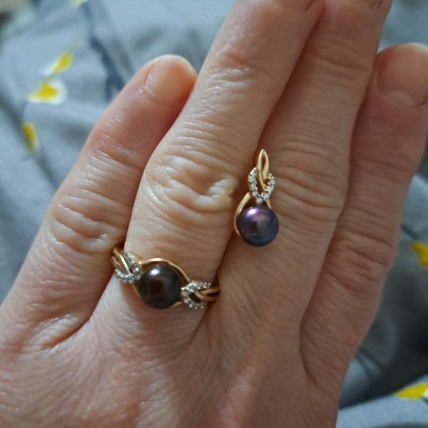 Я влюбилась в этот комплект, аккуратные серьги и милое колечко, жемчуг переливается сине-фиолетоввм оттенком. На маленьких ушках смотрится очень красиво.