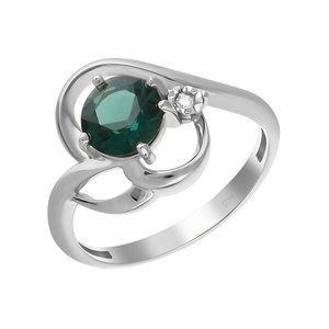 Золотое кольцо с изумрудом и бриллиантом с алмазной гранью и родированием