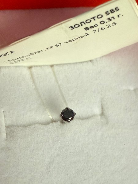 Золотая серьга с черным бриллиантом