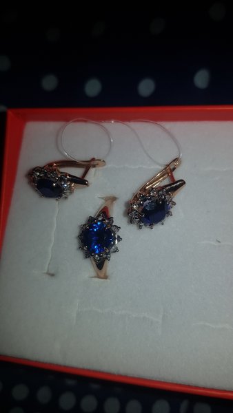 Покупал серьги и кольцо в подарок.Комплект очень красивый. Продавец красиво упаковала.